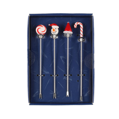Jouluinen cocktail-haarukka joulun herkkupöytään. Pakkauksessa 4 kpl haarukoita.