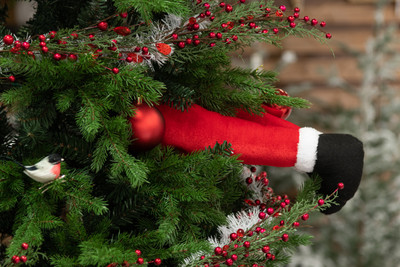 Joulupukki on syöksynyt piiloon! Hauskat pukinjalat, jotka voit laittaa esim. joulukuuseen, kukkapurkkiin tai käyttää vaikka sisustustyynynä sängyn päällä. Ilahduttava koriste, jolla voi hauskuuttaa perheenjäseniä ja vieraita. Saa myös roikkumaan!