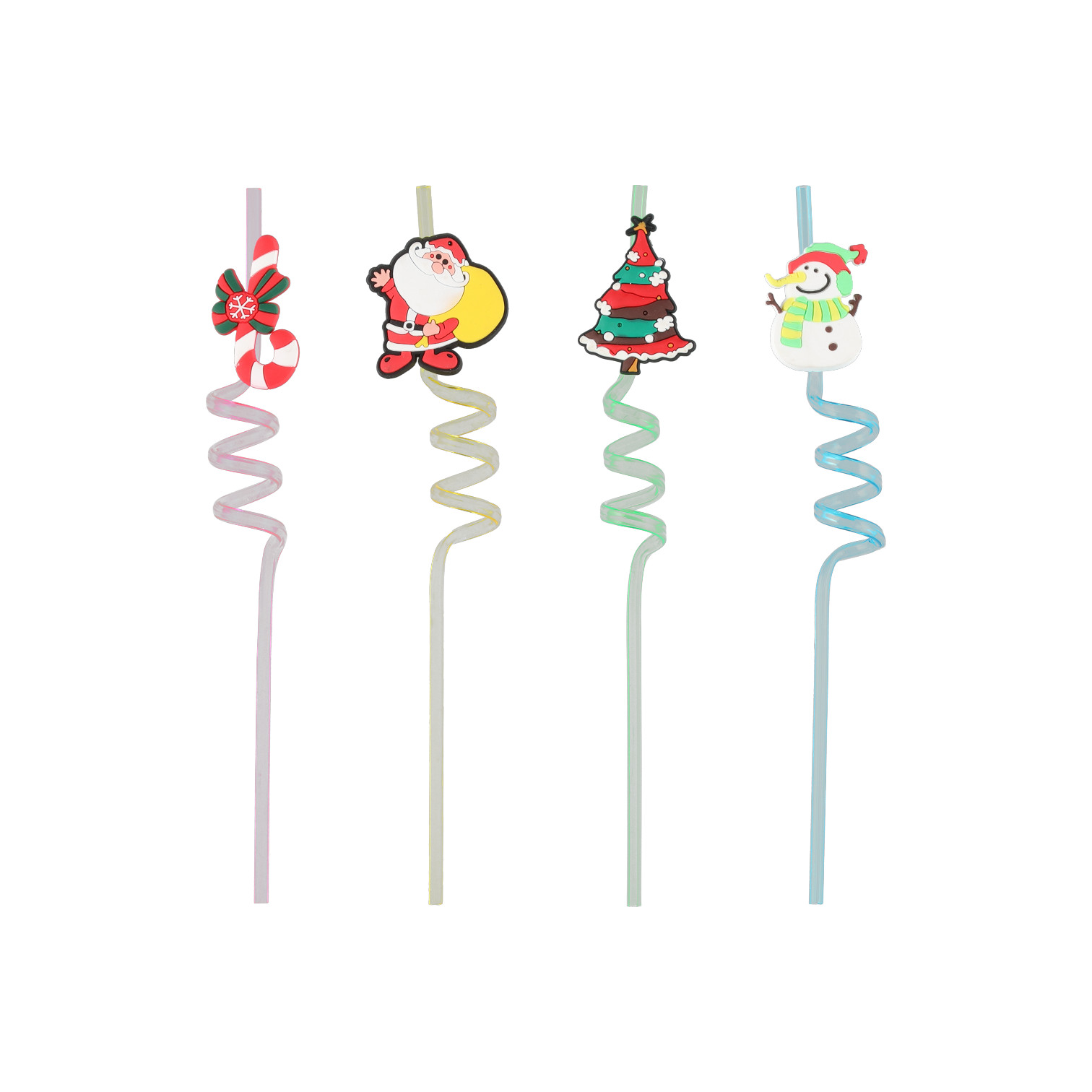 Kierrepilli jouluisella koristeella. Veikeä lisä joulukattauksiin. Valmistettu kestävästä PET-muovista. Uudelleen käytettävä. Pakkauksessa on neljä erilaista pilliä.