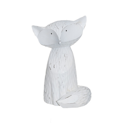 Ihastuttava valkoinen polyresiinistä valmistettu kettu koriste-esine.