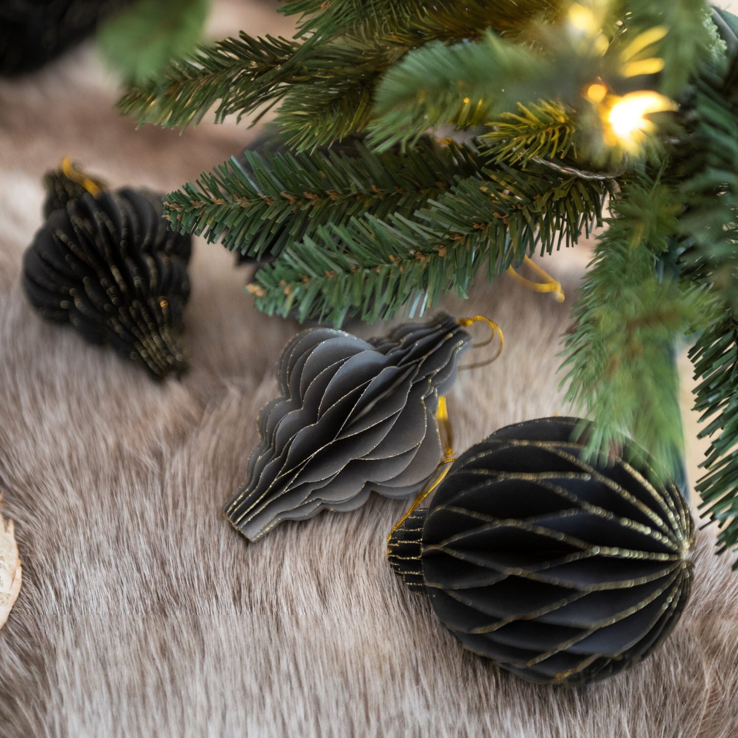 Kennopaperista valmistetut upeat timantinmuotoiset kuusenkoristeet ovat kevyitä, mutta samalla runsaita. Koristeet on valmistettu kestävästä paperista, eivätkä ne rypisty tai rikkoudu koottaessa; voit käyttää niitä aina uudelleen. Koristeissa on kauniit kullatut reunat, jotka tuovat koristeeseen ylellisyyden tuntua. Näillä näyttävillä koristeilla on helppo koristella niin kuusi, joulupöytä kuin ikkunakin. Kuusenkoriste on säilytyksessä litteä ja avataan muotoonsa käyttöönotettaessa. Koristeet on helppo koota ja ne pysyvät muodossaan kätevällä magneettikiinnityksellä. Pakkauksessa on 3 kpl koristeita.