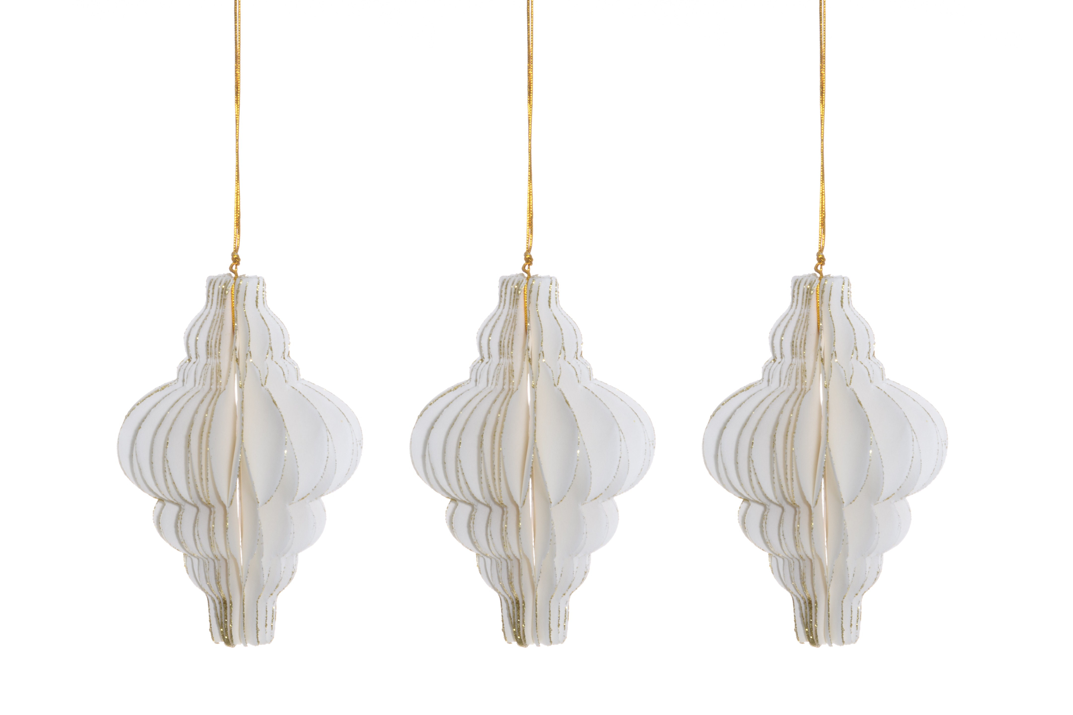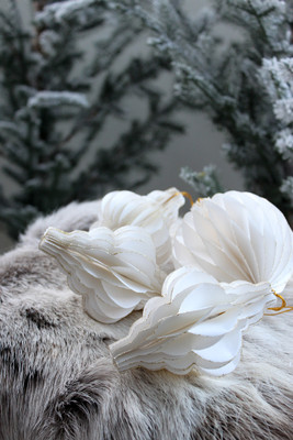 Kennopaperista valmistetut upeat timantinmuotoiset kuusenkoristeet ovat kevyitä, mutta samalla runsaita. Koristeet on valmistettu kestävästä paperista, eivätkä ne rypisty tai rikkoudu koottaessa; voit käyttää niitä aina uudelleen. Koristeissa on kauniit kullatut reunat, jotka tuovat koristeeseen ylellisyyden tuntua. Näillä näyttävillä koristeilla on helppo koristella niin kuusi, joulupöytä kuin ikkunakin. Kuusenkoriste on säilytyksessä litteä ja avataan muotoonsa käyttöönotettaessa. Koristeet on helppo koota ja ne pysyvät muodossaan kätevällä magneettikiinnityksellä. Pakkauksessa on 3 kpl koristeita.
