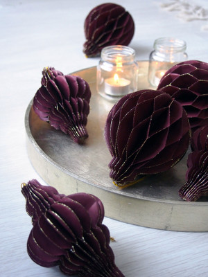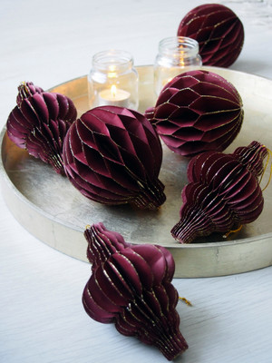 Kennopaperista valmistetut upeat timantinmuotoiset kuusenkoristeet ovat kevyitä, mutta samalla runsaita. Koristeet on valmistettu kestävästä paperista, eivätkä ne rypisty tai rikkoudu koottaessa; voit käyttää niitä aina uudelleen. Koristeissa on kauniit kullatut reunat, jotka tuovat koristeeseen ylellisyyden tuntua. Näillä näyttävillä koristeilla on helppo koristella niin kuusi, joulupöytä kuin ikkunakin. Kuusenkoriste on säilytyksessä litteä ja avataan muotoonsa käyttöönotettaessa. Koristeet on helppo koota ja ne pysyvät muodossaan kätevällä magneettikiinnityksellä. Pakkauksessa on 3 kpl koristeita.