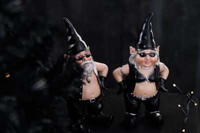 Polyresiinistä valmistettu rokkihenkinen Biker-tonttu on astetta päheämpi joulukoriste!